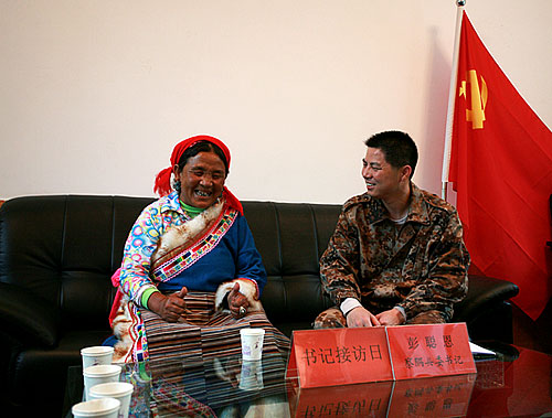 西藏自治区察隅县委书记彭聪恩在书记接访接访上访群众。