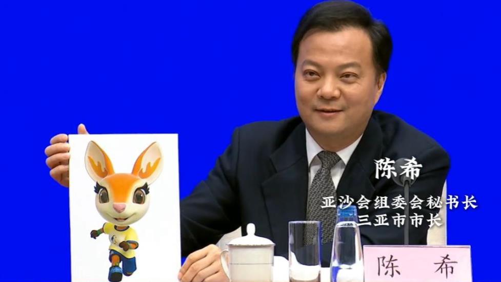 1月12日,国新办举行新闻发布会。亚沙会组委会秘书长、三亚市市长陈希向大家展示了第六届亚洲沙滩运动会吉祥物“亚亚”,并讲述其背后的寓意。