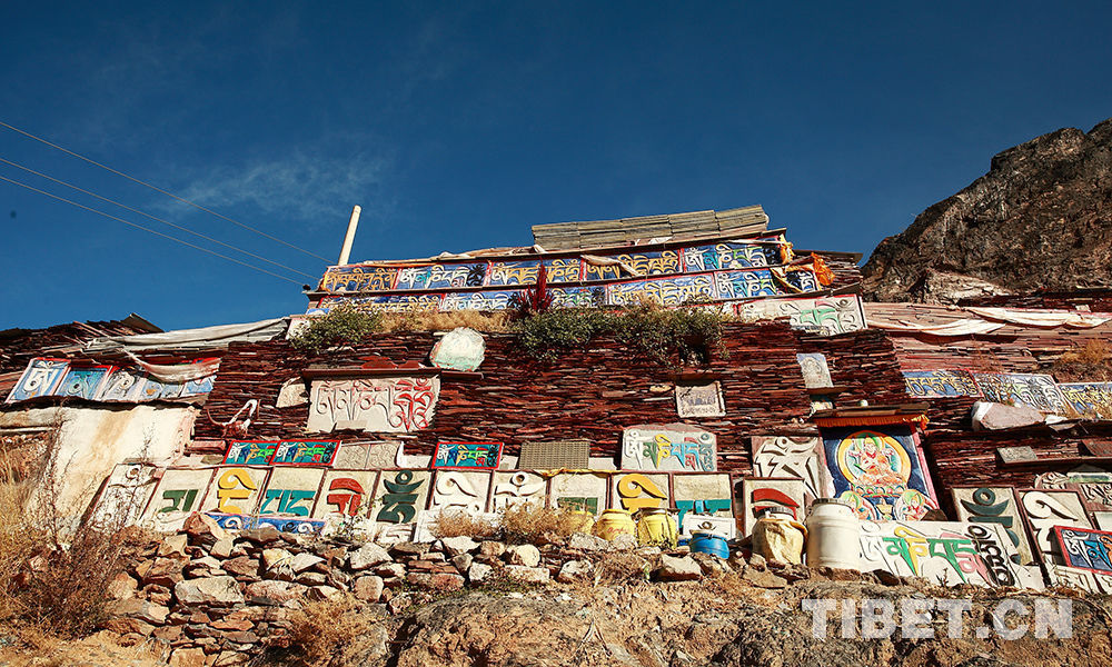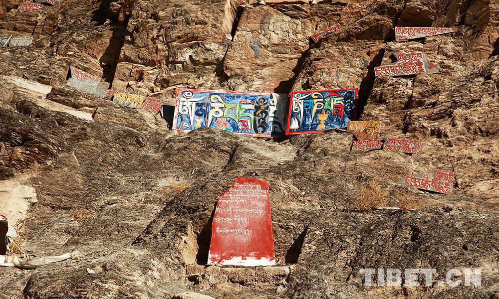 拉萨药王山西侧的阳面山上,密密麻麻刻满了上千个色彩艳丽、大小不一的佛像,人们把这块摩崖石刻称为“千佛崖”。相传,这里最早的石刻佛像是7世纪松赞干布时期的作品。松赞干布在此崖前见到六字真言及佛像、菩萨的幻影。摄影:许娜