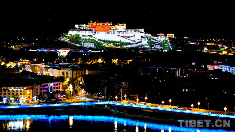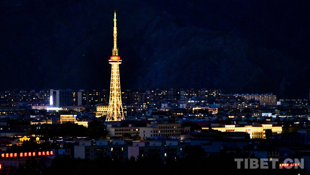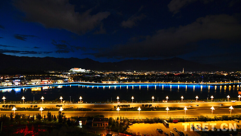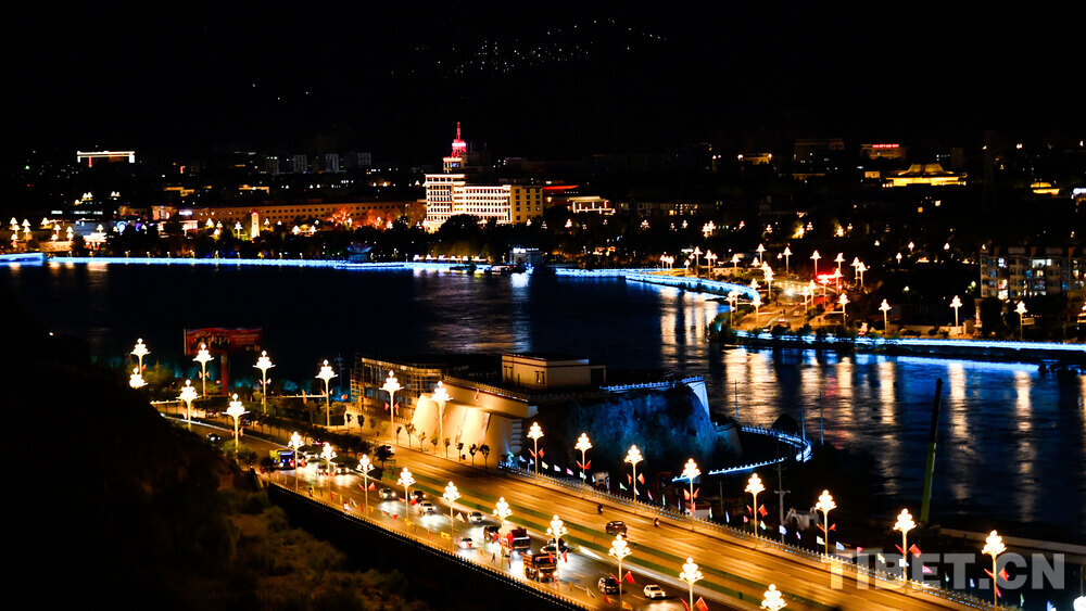 图为从南山远眺拉萨河北岸的城市灯火 摄影:央拉