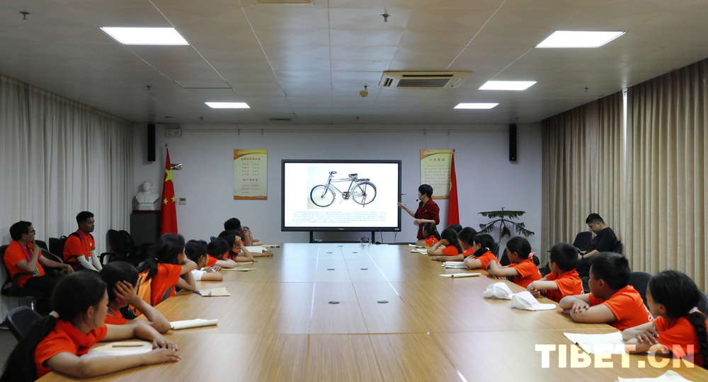 孔繁森始终保持着艰苦朴素的本色。1981年孔繁森第一次援藏期满到莘县任县委副书记,只要时间充足,公事私事甚至下乡办公他都是自己骑自行车去,随行同事有时抱怨:“哪有县委书记总是骑车子下乡办公的,又累又失体面。”孔繁森说:“咱给老百姓办事没有什么体面不体面,再说乡间小道开车、停车都不方便,骑车子既能锻炼身体,又便于行动,多好!”就这样,这辆老式二八大杠自行车伴着孔繁森来往于聊城和莘县各个乡村间。调任聊城行署办公室工作后,他依然如此。图为西藏阿里噶尔县孔繁森小学的孩子们在孔繁森同志纪念馆听工作人员介绍孔繁森同志的自行车故事 摄影:刘莉