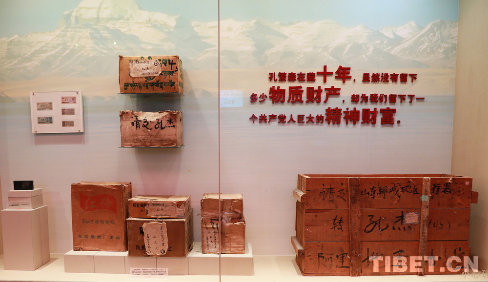 孔繁森同志殉职后,阿里地委的同志在整理他的遗物时,发现除了一些必需的生活用品之外,就是几件简单的换洗衣物。阿里地委用6只纸箱和1只木箱运回了一个地委书记在西藏的全部家当。孔繁森同志虽然没留下多少物质财产,却为我们留下了一个共产党人巨大的精神财富。图为当年的纸箱和木箱原件。摄影:刘莉