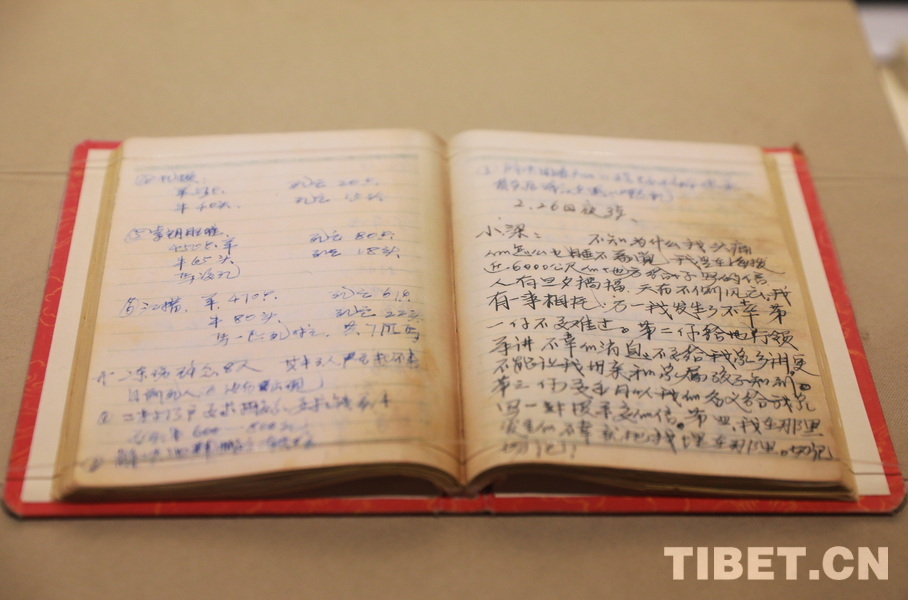 图为山东聊城孔繁森同志纪念馆馆藏国家一级文物——孔繁森同志的笔记本。翻开的这一页右侧是1994年2月27日凌晨3点,画临生死考验的孔繁森在海拔5700米的革吉县曲仓乡一座牧民帐篷里,在工作笔记上留下的“遗书”。“遗书”中,孔繁森托付同事假如自己发生不幸,在哪里发生不幸就埋在哪里,要瞒住他的家人,每月以他的名义给家里写封信报平安。 摄影:刘莉