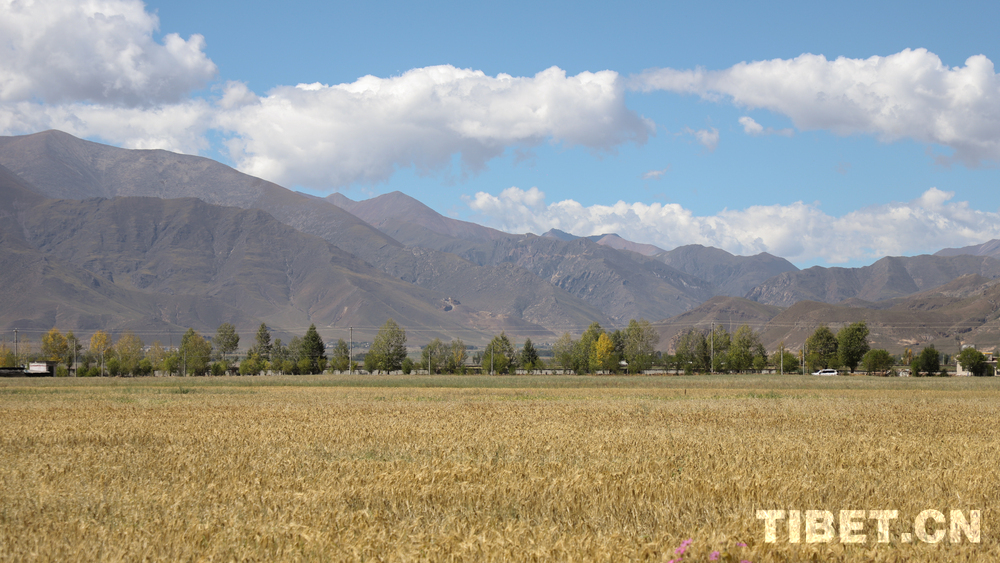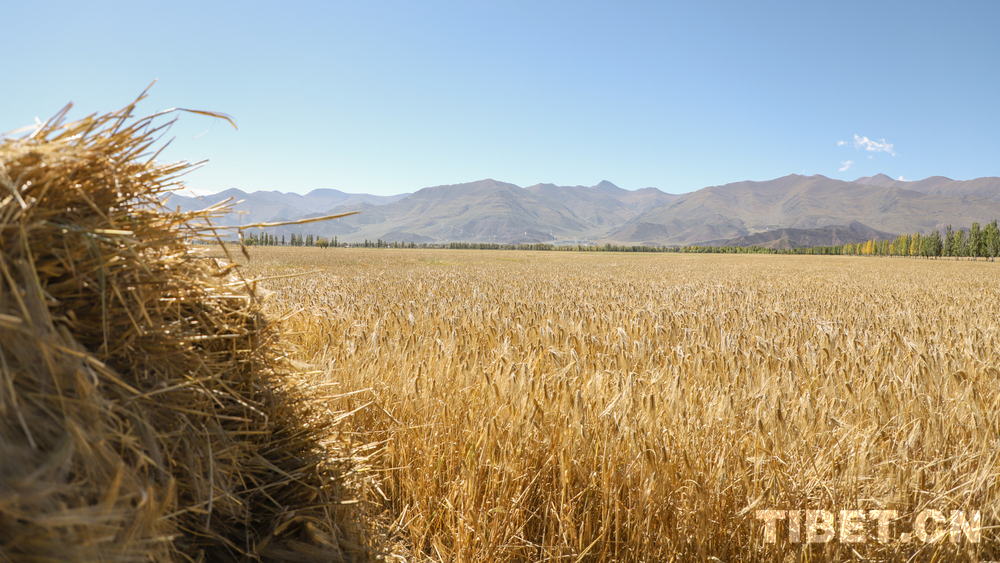 中国西藏网讯 在拉萨河谷的怀抱中,林周县以“拉萨粮仓”之名承载着高原农业的希望。今年9月23日是第八个中国农民丰收节。当日,林周县强嘎镇典冲村村民齐聚在村口的青稞田间,干部群众、农文旅企业代表及游客共庆丰收、共享喜悦。(中国西藏网 记者/贾华加)图为典冲村金色的青稞田 摄影:贾华加