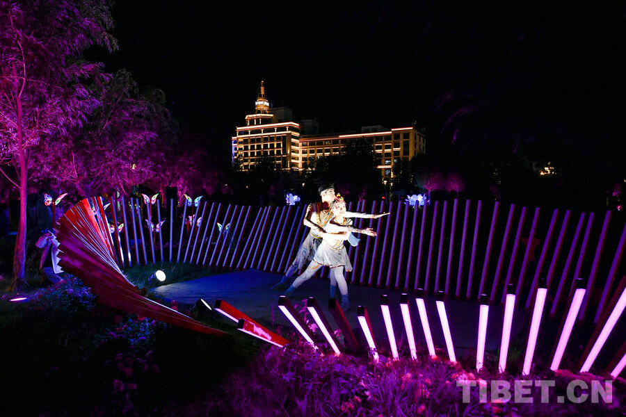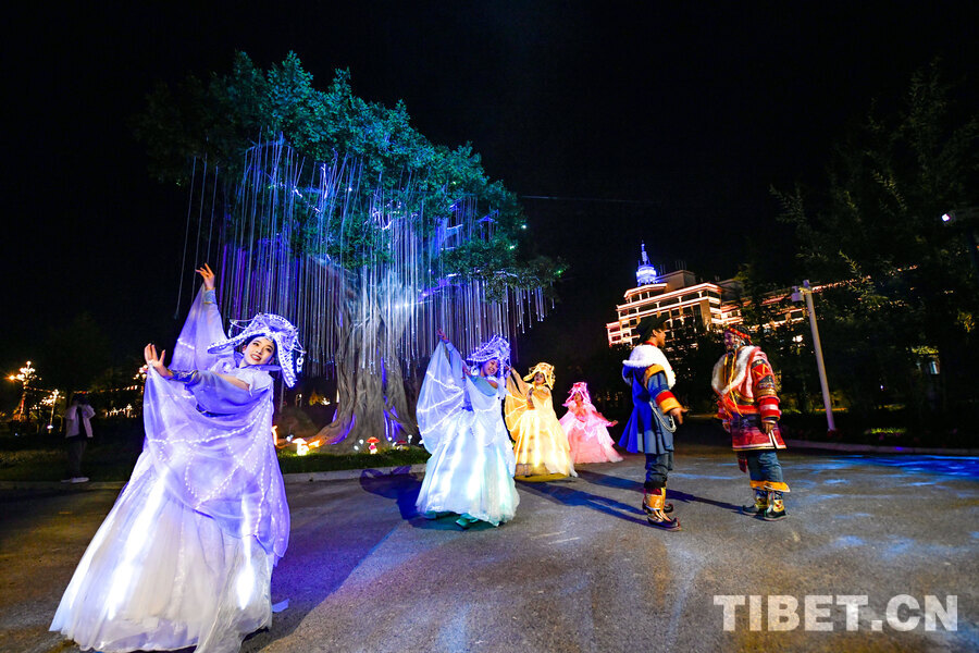 中国西藏网讯 9月29日,拉萨市重大文旅项目《情满拉萨河》盛大启幕。夜幕降临,拉萨滨河公园内灯火璀璨,《情满拉萨河》项目的演职人员早已在这里等待游客的到来。每到一个点位,解锁一个故事,《情满拉萨河》用行进式演出,为游客演绎精彩的西藏故事。(中国西藏网 记者/赵振宇)图为《情满拉萨河》行进式演出现场 摄影:赵振宇