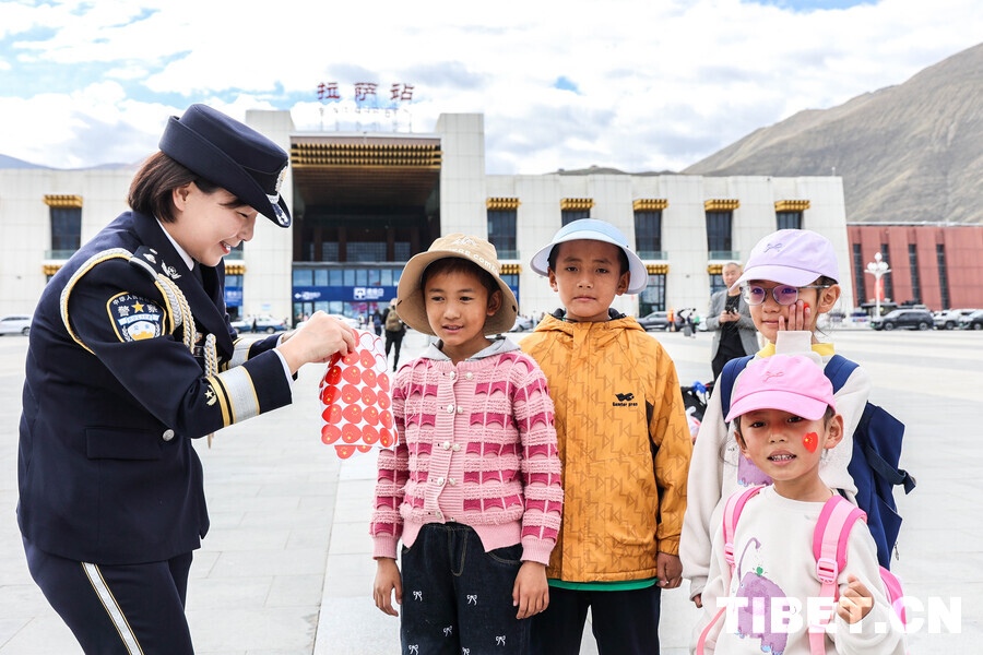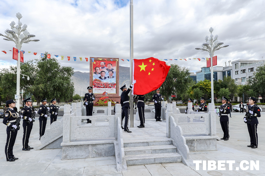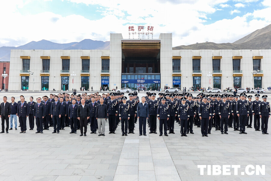 拉萨火车站举行升国旗仪式 共庆新中国76周年华诞