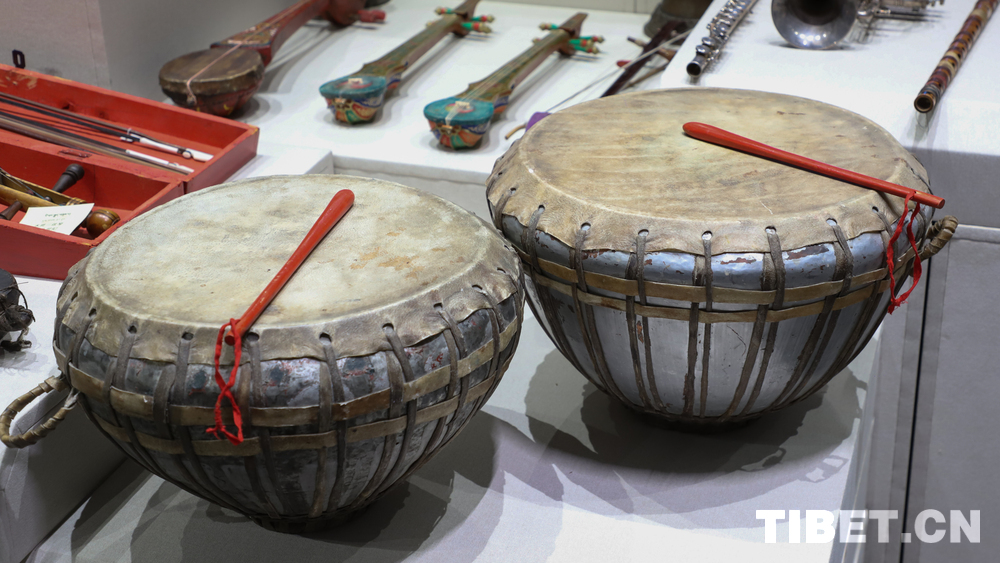 图为展出的铁质卡茹鼓 摄影:贾华加