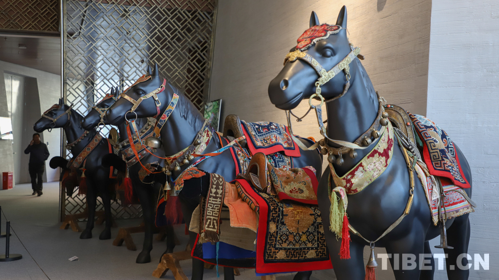 中国西藏网讯 10月10日,首届西藏喜马拉雅文化艺术与古物双年展在西藏唐卡艺术博物馆开幕。活动现场,“喜马拉雅文化艺术精品展:千年荟萃·艺承古韵”展出2000余件古玩藏品,涵盖厨房器具、马具、藏毯、木箱、铁器等多个品类,这些珍品的集中亮相引发了现场观众的强烈兴趣和目光。(中国西藏网 记者/贾华加)图为展出的马具 摄影:贾华加