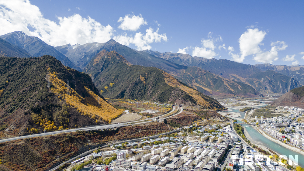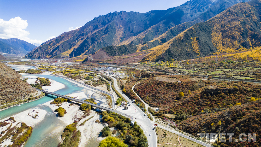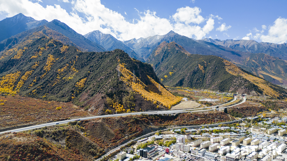 中国西藏网讯 10月27日,西藏自治区林芝市工布江达县的秋天,像是一幅被大自然亲手调色的油画,不再是单一的墨绿,而是被打翻的调色盘浸染,悄然铺展在群山之间。杨树灿金,灌木红火,云杉苍青,它们层层叠叠地铺满山坡,与清澈碧蓝的尼洋河水、绵延的高速公路以及现代化的城市建筑,构成最美的秋日风景。(中国西藏网 记者/王淑 赵振宇)图为工布江达县秋景 摄影:赵振宇