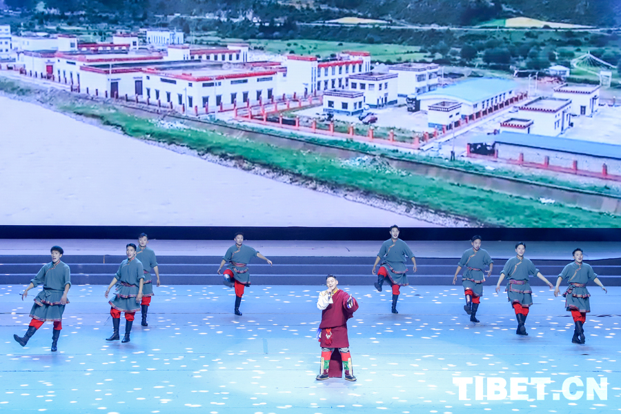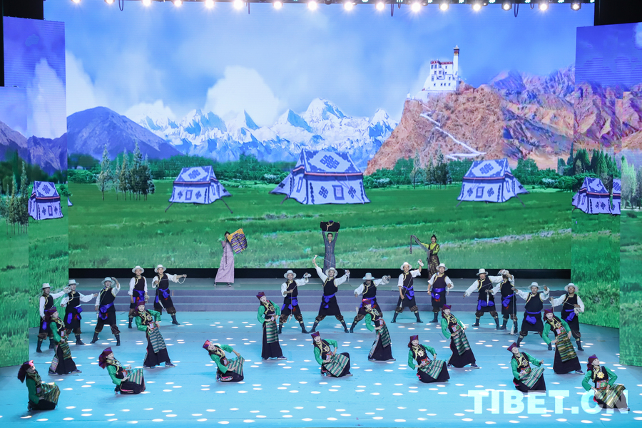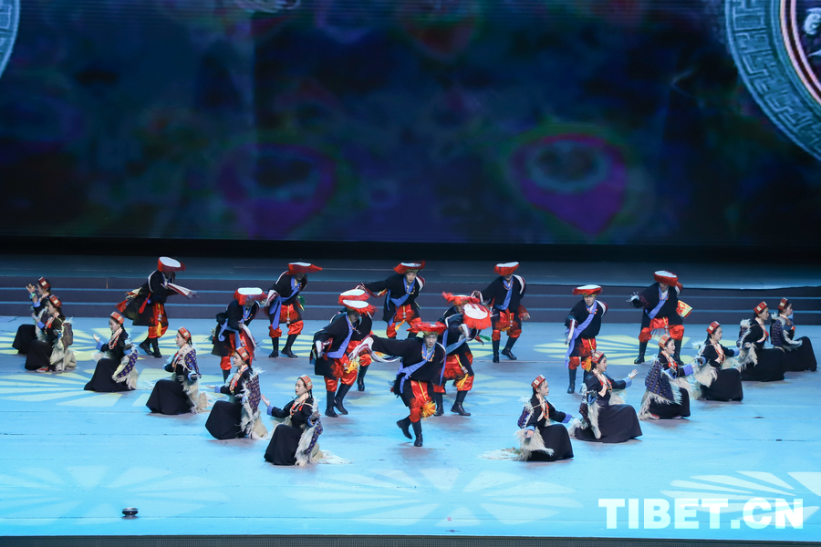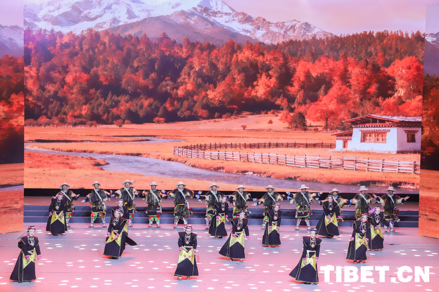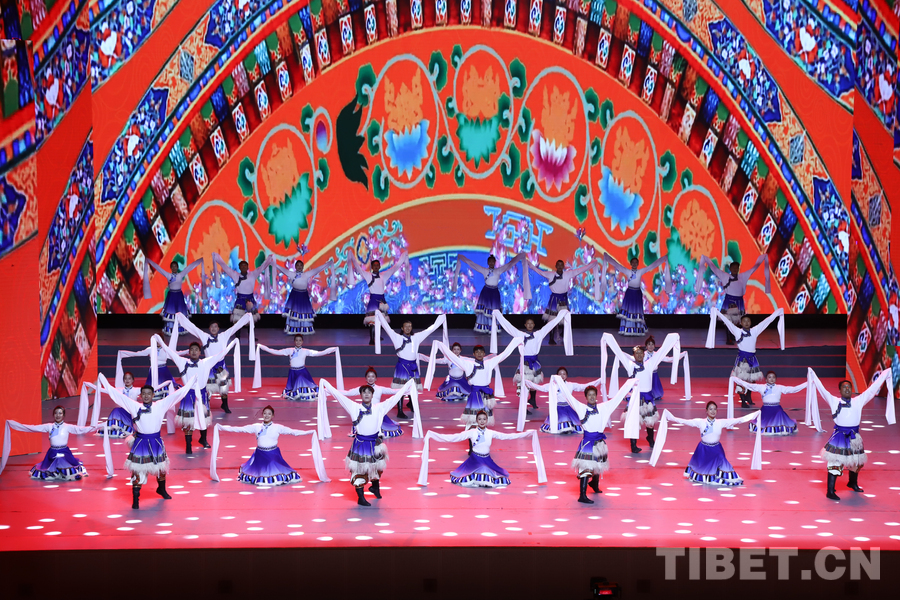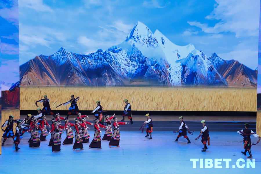 图为昌都市类乌齐县加桑卡乡桑卡行政村和长毛岭乡协塘行政村文艺队演绎的歌伴舞《多彩类乌齐》 摄影:贾华加