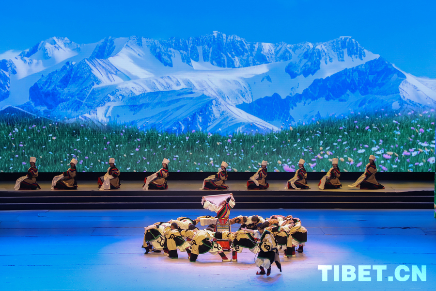中国西藏网讯 10月27日晚,为庆祝西藏自治区成立60周年,以文艺之姿展现高原农牧民幸福生活与文化活力,由西藏自治区文化厅主办,自治区群艺馆(自治区非遗保护中心)承办,各市(地)文化和旅游局协办的“我们的生活充满阳光·格桑花演出季”西藏全区行政村文艺演出队汇演在西藏大剧院上演。(中国西藏网 记者/贾华加)图为由拉萨市城关区娘热民间艺术团与山南市贡嘎县吉琼行政村文艺队联合演绎的开场舞《格桑花开》 摄影:贾华加