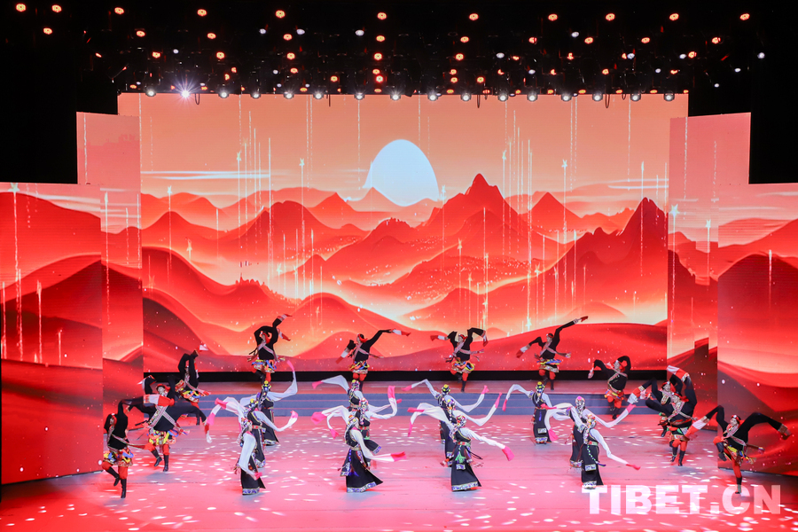 图为昌都市类乌齐县长毛岭乡协塘行政村文艺队演绎的舞蹈《长袖飘向红太阳》