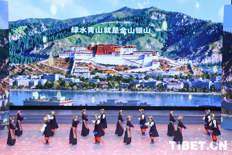 图为拉萨市乃琼社区文艺队演绎的舞蹈《绿水青山拉萨美》 摄影:贾华加