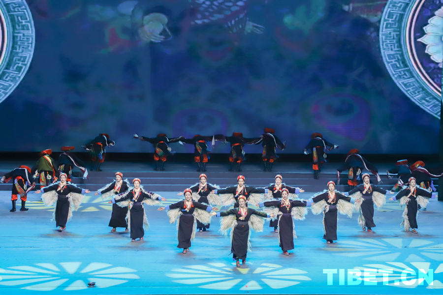 图为日喀则市吉隆县萨勒乡文艺队演绎的舞蹈《萨勒谐钦》摄影:贾华加
