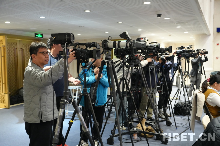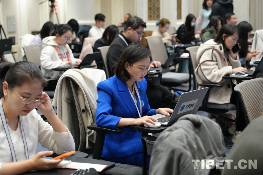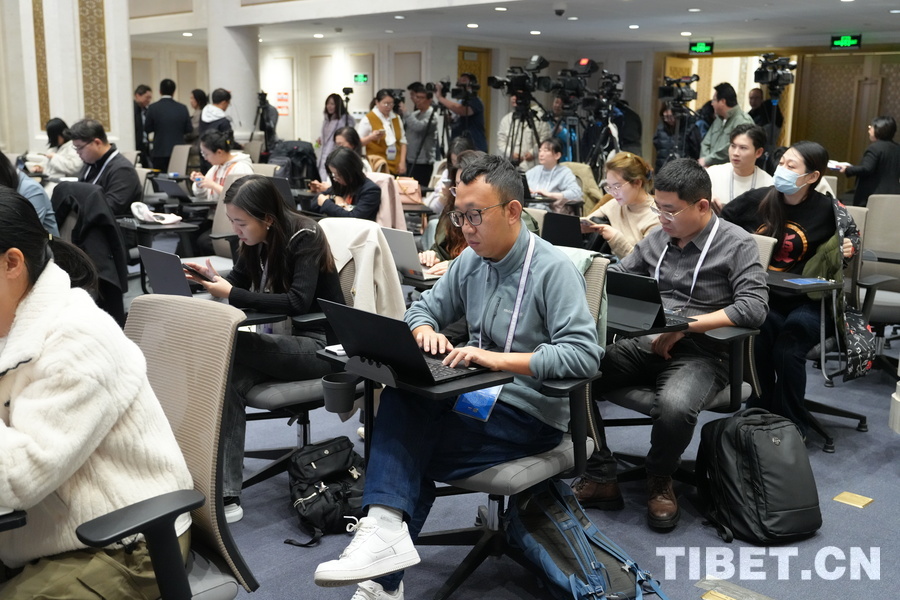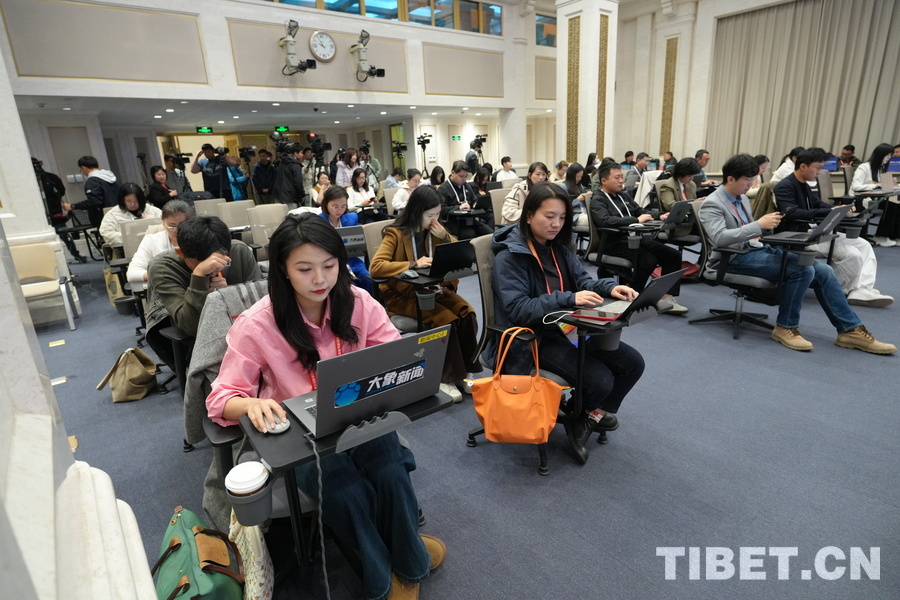 图为新闻发布会开始前记者们正在有序准备 摄影:周晶
