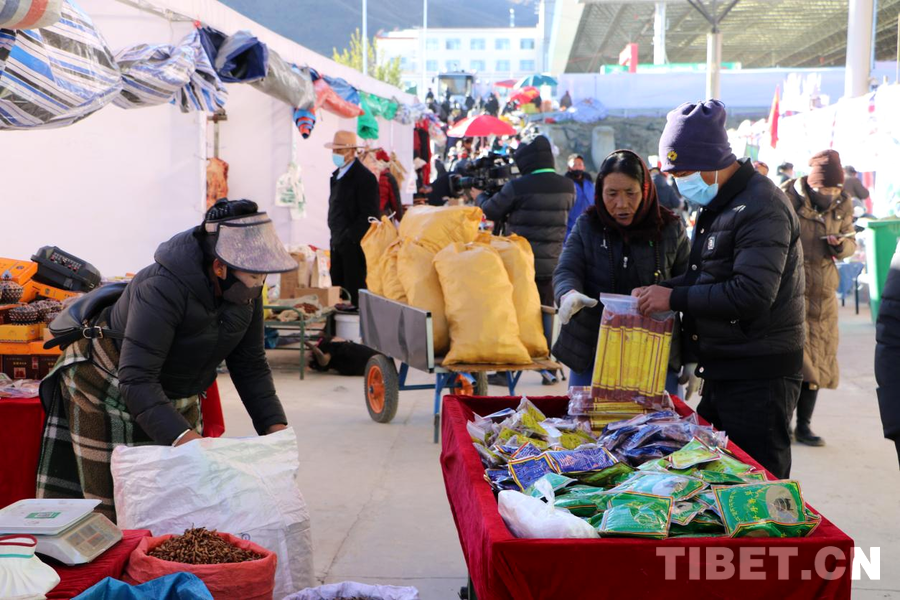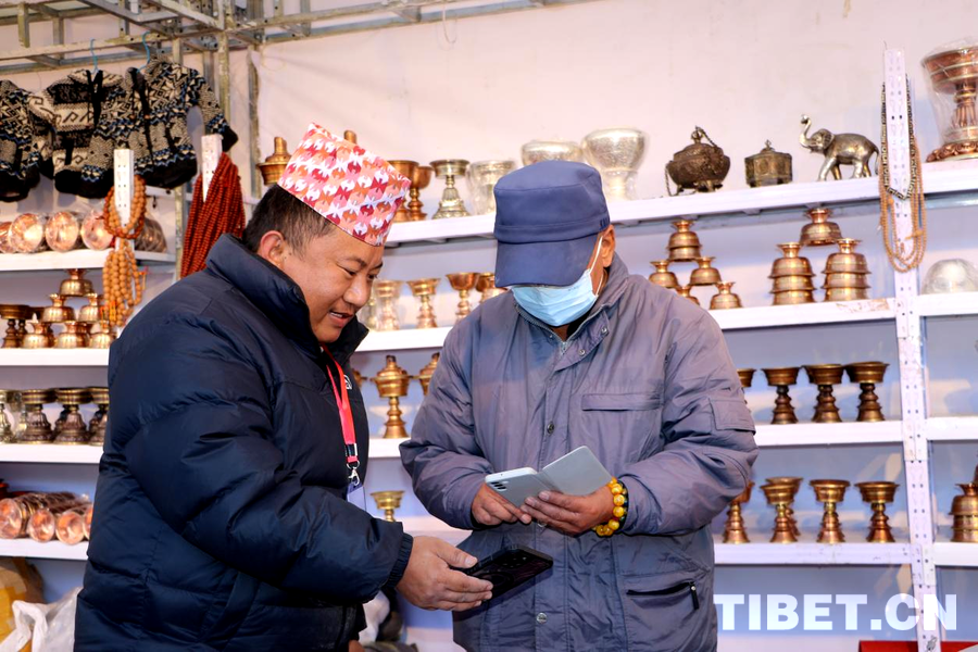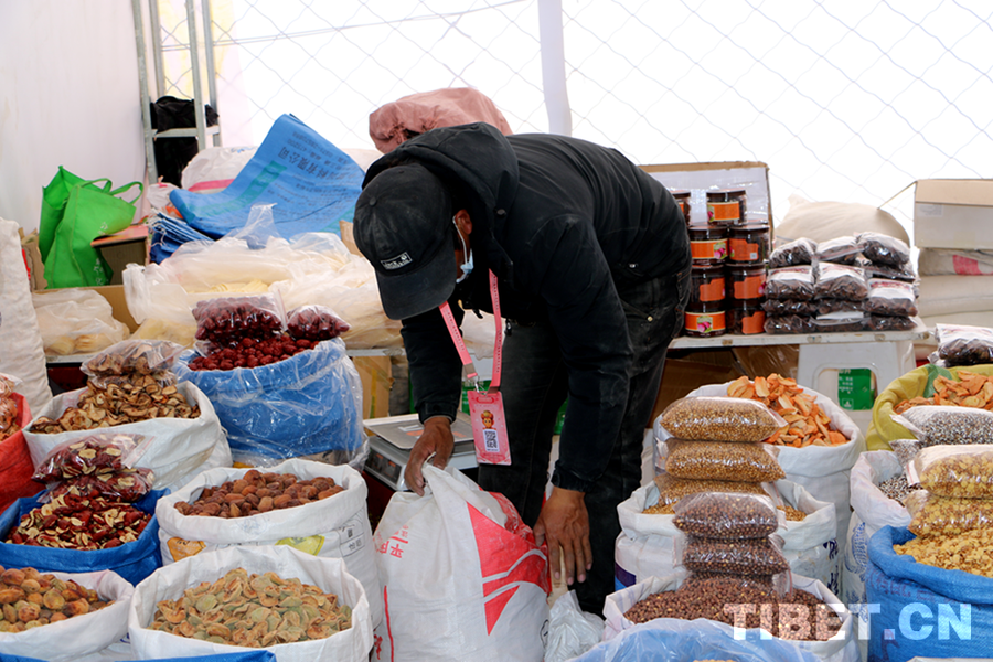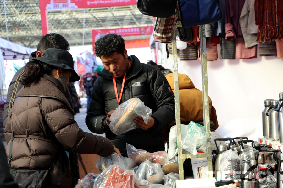 中国西藏网讯 12月1日,第45届雅砻物资交流会在西藏自治区山南市乃东区火热开幕。本届物交会现场设置农特产品、畜产品、民族手工艺品、餐饮、娱乐等9大功能展区,预设展位2621个,吸引尼泊尔、不丹、巴基斯坦等国商户,以及全国多地和山南本地农牧民、合作社、企业共同参展。牦牛肉、藏香猪、青稞制品等农特产品新鲜地道,木碗、唐卡等非遗手工艺品精美别致,尼泊尔饰品等异国商品独具风情,琳琅满目的展品让往来游客目不暇接。(中国西藏网 通讯员/拥青卓嘎 记者/次旦拉姆)图为第45届雅砻物资交流会现场消费者正在选购商品 摄影:拥青卓嘎