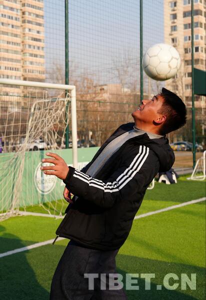 图为西藏那曲色尼区青少年足球队教练颠球 摄影:宋俊