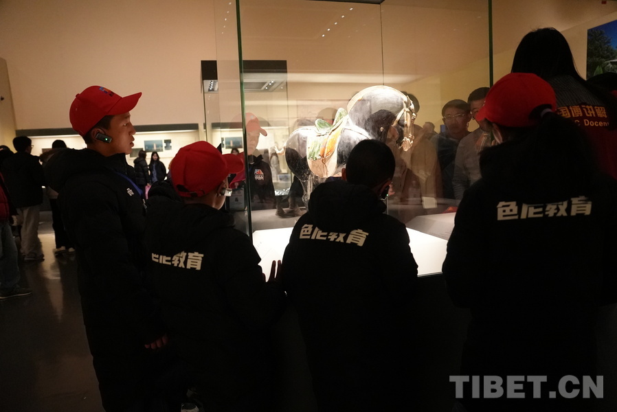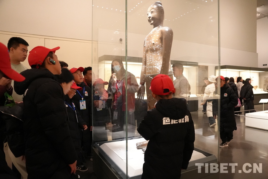 图为讲解员向师生介绍针灸铜人 摄影:苏洋