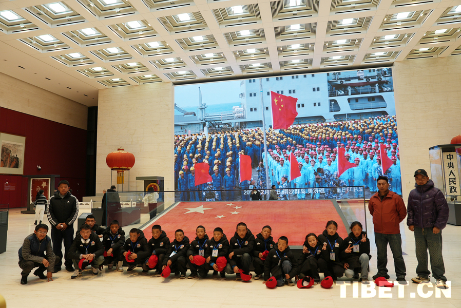 近期,西藏那曲市色尼区教育(体育)局与西藏自治区人民政府驻北京办事处联合组织小学生足球队赴京,开展为期一周的交流学习活动。其间,研学团一行走进中国国家博物馆,参观了基本陈列展厅。(中国西藏网 记者/苏洋)图为师生们在新中国升起的第一面五星红旗前合影留念 摄影:苏洋