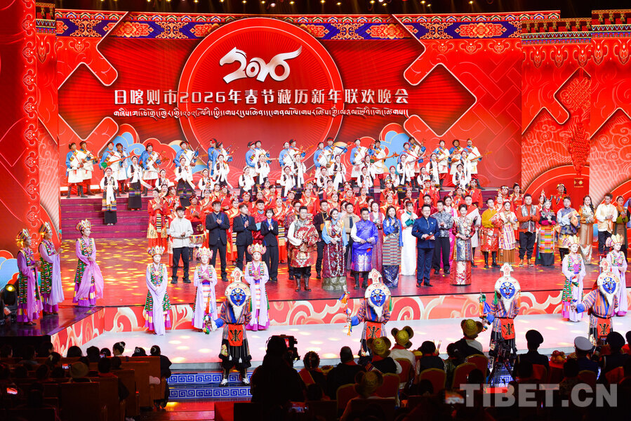 中国西藏网讯 火马踏春至,雪域启新章。1月17日,日喀则市2026年春节藏历火马新年联欢晚会播出。这场融汇高原风情、时代节拍与民族团结的视听盛宴,于夜幕中绽放光彩,让我们共赴这场专属珠峰儿女的新年之约。(中国西藏网 记者/赵振宇)图为日喀则市2026年春节藏历火马新年联欢晚会现场 摄影:赵振宇