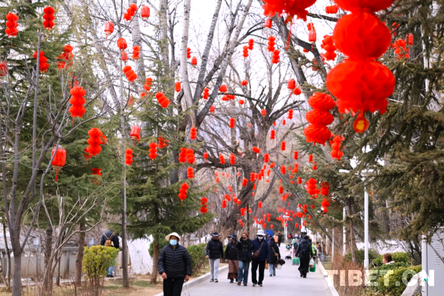 图为拉萨街角被红灯笼晕染出浓浓的年意 摄影:张艺彤