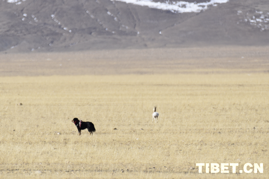 图为藏獒与藏原羚 摄影:赵振宇