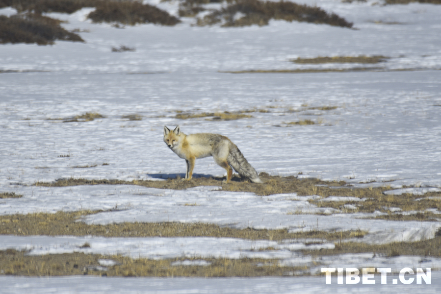 图为雪地中的藏狐 摄影:赵振宇