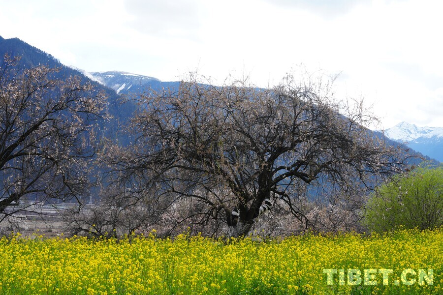 林芝嘎拉村,油菜花地、桃花古树与远处雪山自成一景 摄影:张艺彤