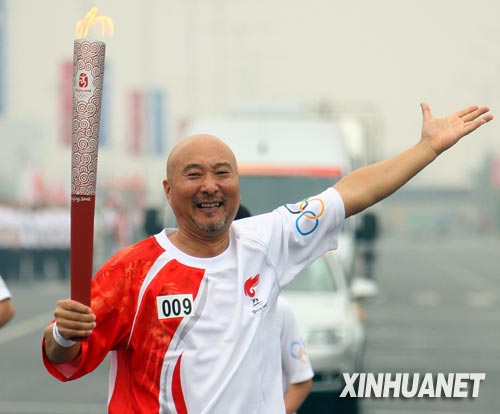 5月27日,火炬手陈佩斯在进行传递。新华社记者 邢广利 摄