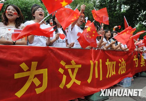 5月27日,群众迎接奥运圣火。新华社记者 孙参 摄