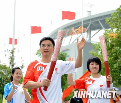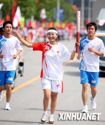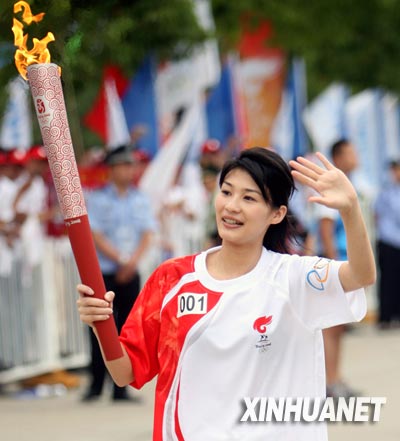 5月28日,第一棒火炬手李娜在进行传递。当日,北京奥运会圣火在安徽合肥传递。新华社记者 邢广利 摄